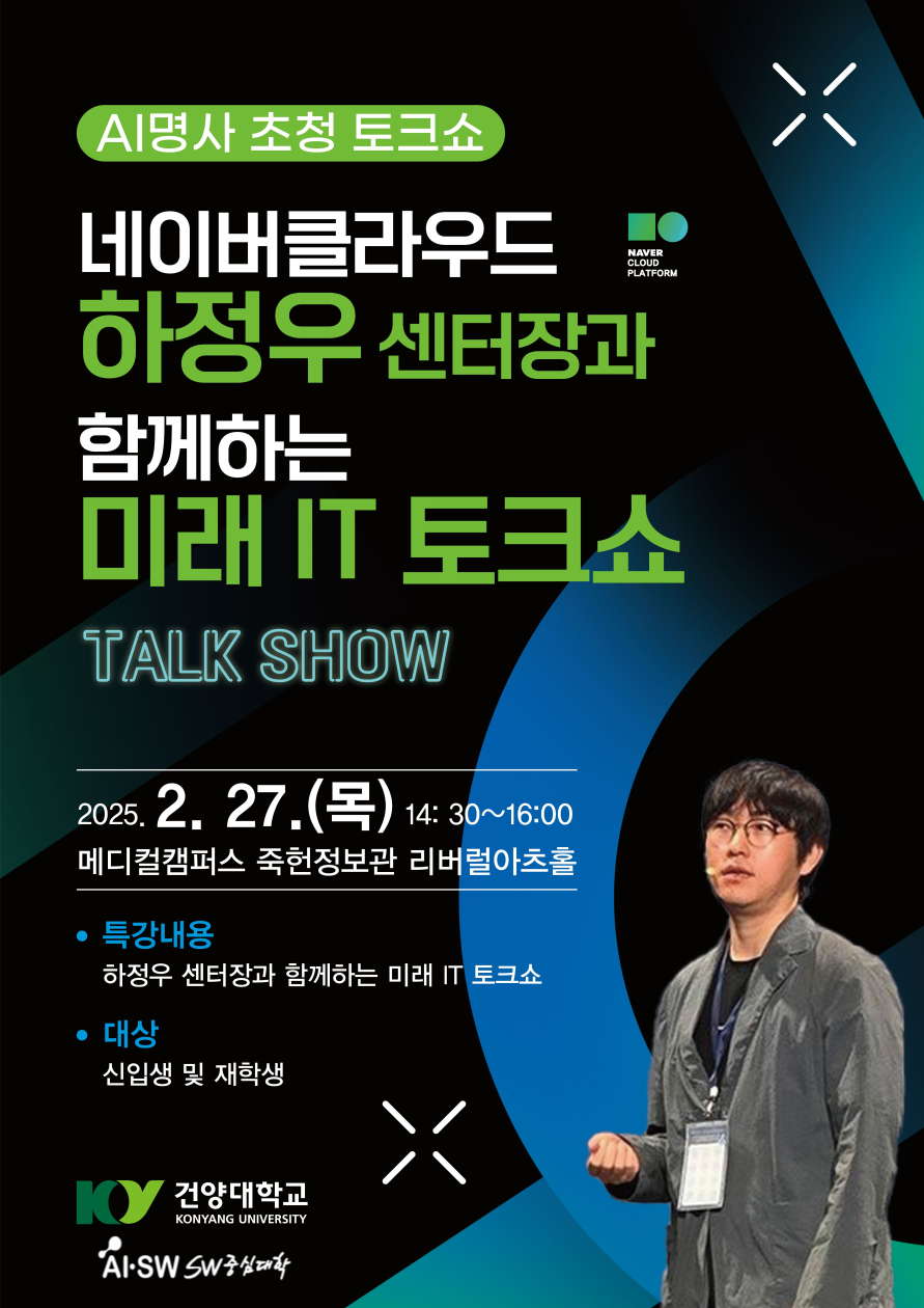 건양대학교에서 네이버클라우드 하정우 센터장과 함께하는 미래IT 토크쇼 를 진행합니다!
